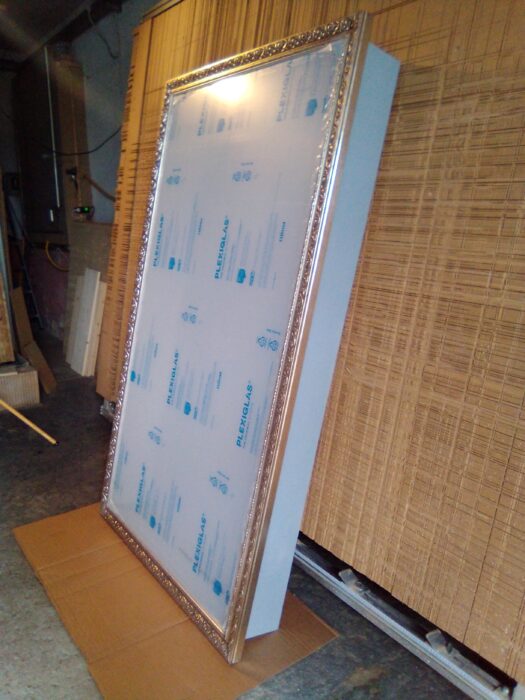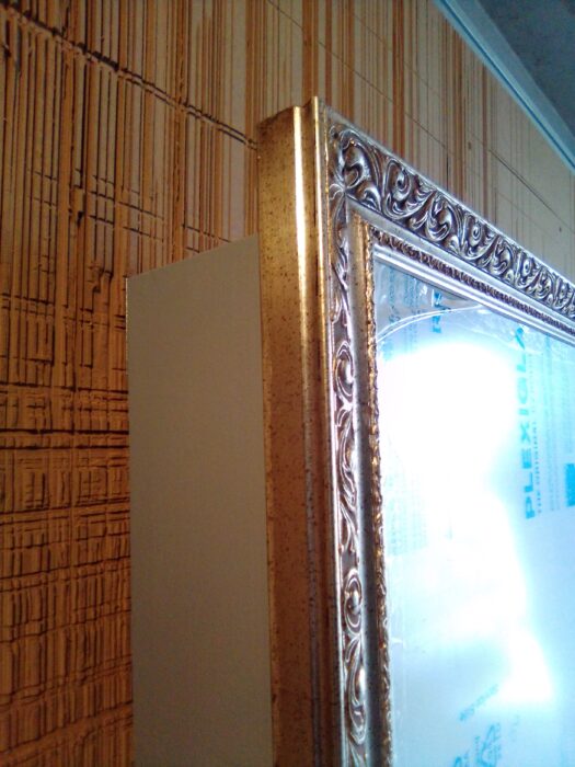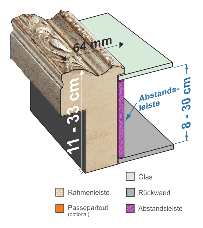 - Material / Oberfläche: Holz (Ajous), Barockleiste Nr. 936 versilbert
